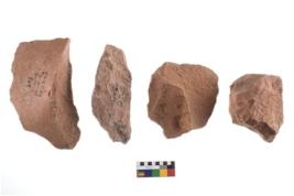 | Description / विवरण | Four worked utilised flakes, most of them bearing sharp edges. |