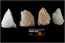 | Description / विवरण | There are n-4 of intact utilized flake cores made up of Quartz. Some of them have bulge of percussion and some are flat flakes. |