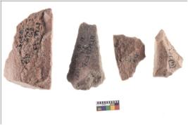 | Description / विवरण | Four worked utilised flakes with sharp edges. |