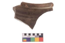 | Description / विवरण | Specimen of gray ware with decorative black pigment. |
