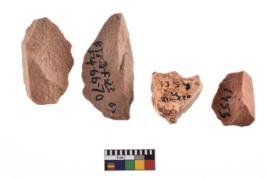 | Description / विवरण | A specimen of flake tool with prominent flaking marks. It made up of a short flakes with sides trimmed. It is rectangular in shaped. |