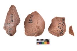 | Description / विवरण | A specimen of flake tool with prominent flaking marks. It made up of a short flakes with sides trimmed. It is rectangular in shaped. |