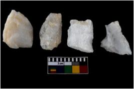 | Description / विवरण | There are n-4 of intact utilized flake cores made up of Quartz. Some of them have bulge of percussion and some are flat flakes. |