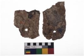 | Description / विवरण | The object is a Clamp of material Iron. It has flat strips with rounded ends. It is in broken condition. It is totally corroded. It has perforation on it. N 2 |
