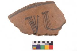 | Description / विवरण | Specimen of black on red ware with black decorative Animal motif nature painting. |