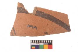 | Description / विवरण | Specimen of black on red ware with black decorative geometric painting. |