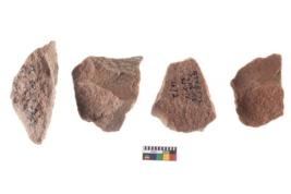 | Description / विवरण | Four worked utilised flakes with sharp edges. |