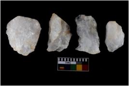 | Description / विवरण | There are n-4 of intact utilized flake cores made up of Quartz. Some of them have bulge of percussion and some are flat flakes. |