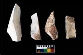 | Description / विवरण | There are n-4 of intact utilized flake cores made up of Chert. Some of them have bulge of percussion, some are flat flakes and few are retouched. |