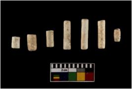 | Description / विवरण | 7 cylindrical beads of faiance, all are of same size. |