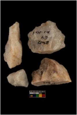 | Description / विवरण | There are n-4 of cores. All are made up of Quartz. All of them are intact fully fluted cores without any trace of crested ridge flakes. |