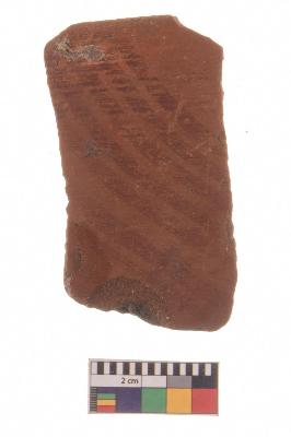 | Description / विवरण | Specimen of red ware with decorative red pigment. |
