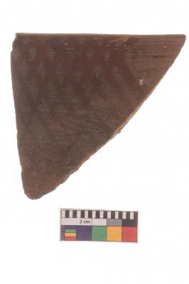 | Description / विवरण | Specimen of gray ware with decorative geometric Net Pattern painting |