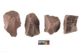 | Description / विवरण | Four worked utilised flakes with sharp edges. |