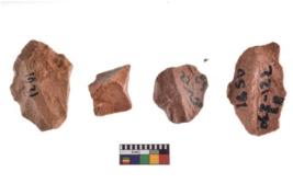 | Description / विवरण | A specimen of flake tool with prominent flaking marks. It made up of a short flakes with sides trimmed. It is rectangular in shaped. |