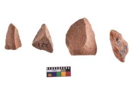 | Description / विवरण | A specimen of flake tool with prominent flaking marks. It made up of a short flakes with sides trimmed. It is rectangular in shaped. |