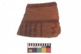 | Description / विवरण | Specimen of red ware with decorative red pigment. |