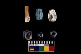 | Description / विवरण | The objects are Beads. The material is Glass. Some of the beads are Globular in shape. One of the bead is tubular in shape. One of the bead is Partially broken. While other beads are in complete form. All the beads are of different shape and sizes. |