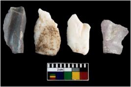 | Description / विवरण | There are n-4 of intact utilized flake cores made up of Chert. Some of them have bulge of percussion, some are flat flakes and few are retouched. |
