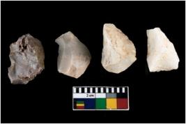 | Description / विवरण | There are n-4 of intact utilized flake cores made up of Chert. Some of them have bulge of percussion, some are flat flakes and few are retouched. |