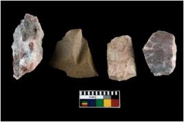 | Description / विवरण | There are n-4 of intact utilized flake cores made up of Chert. Some of them have bulge of percussion, some are flat flakes and few are retouched. |