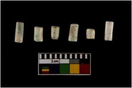 | Description / विवरण | These n 06 beads of faiance and steatite. 3 are tubular , 3 are short beads. It is bluish in colour. |