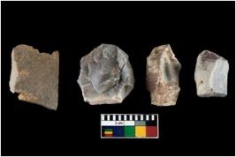 | Description / विवरण | There are n-4 of intact utilized flake cores made up of Chert. Some of them have bulge of percussion, some are flat flakes and few are retouched. |