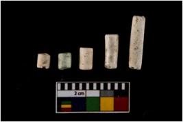 | Description / विवरण | set of 6 steatite beads. N 4 are tubular , n 2 are short. N 4 are from layer 2 , n 1 is from layer 4 and n 1 is unstratified. . |