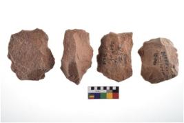 | Description / विवरण | Four worked utilised flakes with sharp edges.Many a times they are pointed at one end. |
