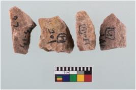 | Description / विवरण | Four worked utilised flakes with sharp edges.Many a times they are pointed at one end. |