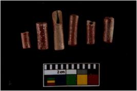 | Description / विवरण | This is a set of n 6 shaped tubular beads. They are made of red paste and some are glazed. Some are plain. |
