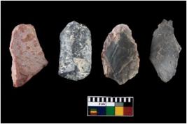 | Description / विवरण | There are n-4 of intact utilized flake cores made up of Chert. Some of them have bulge of percussion, some are flat flakes and few are retouched. |