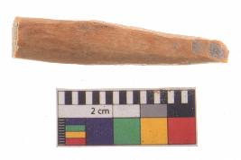 | Description / विवरण | Specimen of bone point with conical body and circular in cross section. It is creamish in colour. |