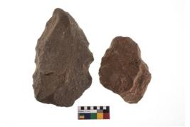 | Description / विवरण | The objects are Stone Tools. These stone tools are of material Quartzite. The object are Handaxe. These objects are partially broken and eroded sligthly. These handaxes are of Pear-shaped AMP 11 and Triangular shaped AMP 4 . |