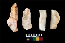| Description / विवरण | There are n-4 of intact utilized flake cores made up of Chert. Some of them have bulge of percussion, some are flat flakes and few are retouched. |