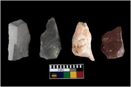 | Description / विवरण | There are n-4 of intact utilized flake cores made up of Chert. Some of them have bulge of percussion, some are flat flakes and few are retouched. |