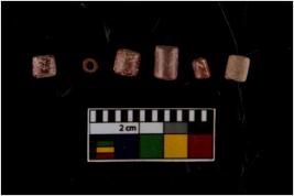 | Description / विवरण | This is a set of n 6 tubular beads. They are made of red paste and some are glazed. Some are plain. |