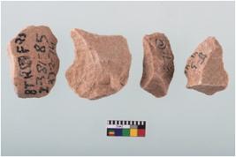 | Description / विवरण | Four worked utilised flakes with sharp edges.Many a times they are pointed at one end. |