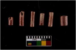 | Description / विवरण | This is a set of n 6 tubular beads. They are made of red paste and some are glazed. Some are plain. |