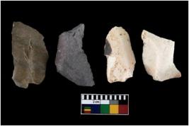 | Description / विवरण | There are n-4 of intact utilized flake cores made up of Chert. Some of them have bulge of percussion, some are flat flakes and few are retouched. |