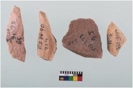 | Description / विवरण | Four worked utilised flakes with sharp edges.Many a times they are pointed at one end. |
