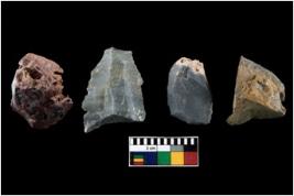 | Description / विवरण | There are n-4 of intact utilized flake cores made up of Chert. Some of them have bulge of percussion, some are flat flakes and few are retouched. |
