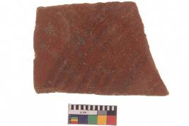 | Description / विवरण | Specimen of red ware with decorative red pigment. |