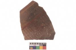 | Description / विवरण | Specimen of red ware with decorative geometric painting. |