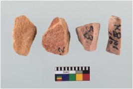 | Description / विवरण | Four worked utilised flakes with sharp edges.Many a times they are pointed at one end. |