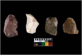 | Description / विवरण | There are n-4 of intact utilized flake cores made up of Chert. Some of them have bulge of percussion, some are flat flakes and few are retouched. |