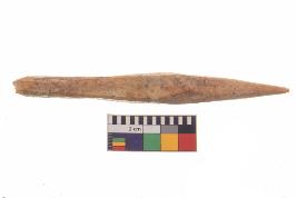 | Description / विवरण | Specimen of bone point with conical body and circular in cross section. It is creamish in colour. |