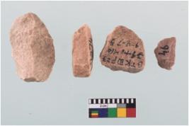 | Description / विवरण | Four worked utilised flakes with sharp edges.Many a times they are pointed at one end. |