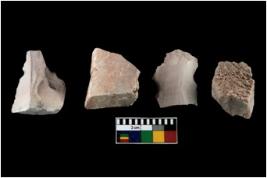 | Description / विवरण | There are n-4 of intact utilized flake cores made up of Chert. Some of them have bulge of percussion, some are flat flakes and few are retouched. |