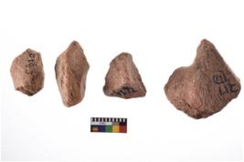 | Description / विवरण | A specimen of flake tool with prominent flaking marks. It made up of a short flakes with sides trimmed. It is rectangular in shaped. |